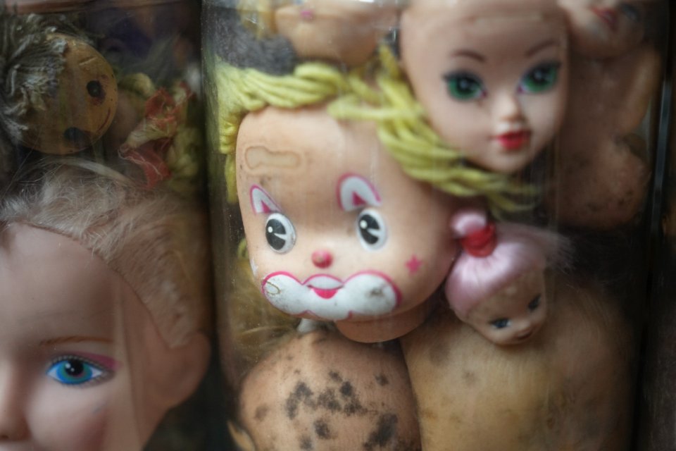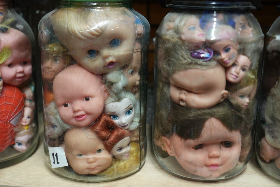 Yaşlı adamın koleksiyona 35-40'lı yaşlarda başladığını ve yaklaşık 50 yıldır biriktirdiğini anlatan Hamdi Dinibütünoğlu, parçaları bulmasını "Denk geldikçe bit pazarlarını, antikacıları gezmiş, çöplerden bulmuş" sözleriyle aktardı. Dinibütünoğlu, amcanın kafaları önce gövdeleriyle sakladığını ancak çok yer kapladığı için sadece kafaları biriktirmeye başladığını kaydederek, "Aklına bu kavanoz fikri gelmiş. Kavanozlara dizerek bunları sergilemeye başlamış. Kavanozların içine keser saplarıyla bastırarak, bebek kafasının formunu da bozmadan bu hale getirmiş. Görünce 'Bu benim olmalı' dedim. Amcayı 15-20 günde yalvar yakar ikna ettik. Sonra sağ olsun bizi de kabul etti mekanına" diye konuştu.