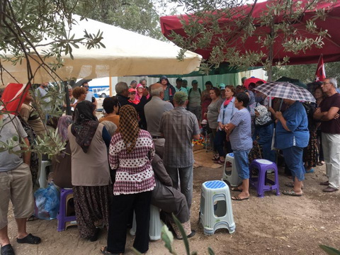 Ayvacık Gülpınar’da, Pınarkale Enerji Üretim Sanayi ve Ticaret AŞ. tarafından zeytinlik alanlarda yapılmak istenen sondaj çalışmasına karşı vatandaşların nöbeti sürüyor. Bugün itibari ile sondaj çalışmasına karşı başlatılan zeytin nöbeti 12’inci gününe girdi. Salı günü sondaj alanına gelen Tarım il Müdürlüğü Yetkilileri tarafından incelemelerde bulunulmuştu. İnceleme sonucu tutulan tutanak ile ilgili raporun önümüzdeki hafta içerisinde yayınlanacağı belirtildi. Nöbet alanına diğer köylerden ve kurumlardan da destek gelirken, Gülpınarlılar’da diğer köylere giderek sondaj ve madenin zararlarına karşı bilinçlendirme çalışmaları yürütüyor. Değirmenlik köylüleri ile bir araya gelen Gülpınarlılar, sondajın zararlarının anlatıldığı sinevizyon gösterisi yaptı.