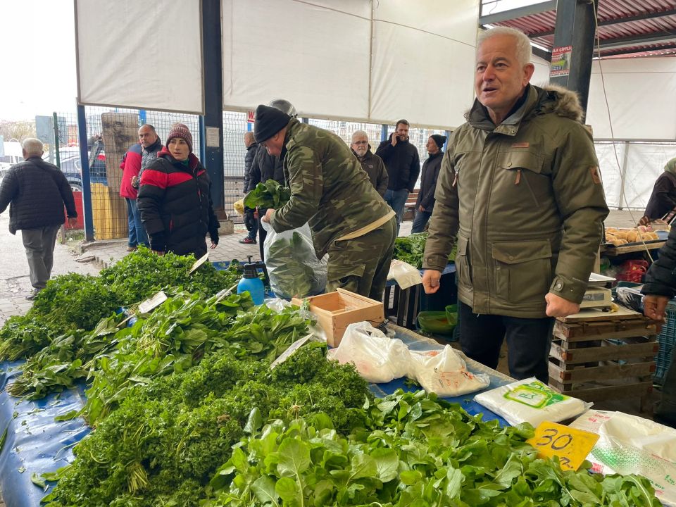 Çanakkale Belediye Başkanı Muharrem Erkek, CHP İl Başkanı Levent Gürbüz, CHP Merkez İlçe Başkanı İbrahim Can Ergun ile CHP'li Belediye Meclisi üyelerinin de kendisine eşlik ettiği ziyarette tezgahın arkasına geçen Güneşhan, alışveriş için gelen vatandaşlara kendi eliyle satış yaptı.
