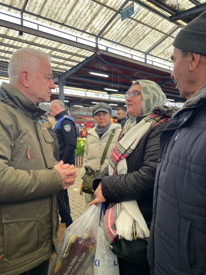 Saha ziyaretleri kapsamında Cuma Pazarında vatandaşlar ve esnaflar ile bir araya gelen CHP Çanakkale Milletvekili İsmet Güneşhan, hem halkın sorunlarını dinledi hem de meclisteki çalışmalarını anlattı.