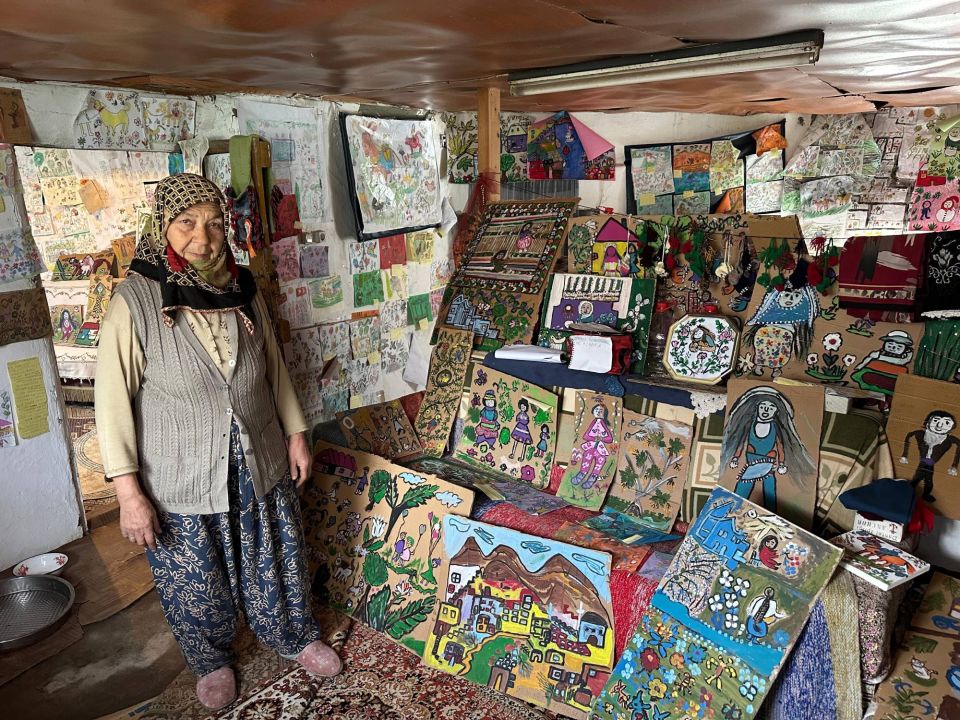 Ayvacık ilçesine bağlı 20 haneli Söğütlü köyünde küçükbaş hayvancılıkla uğraşan 74 yaşındaki Hakime Pala Gürel, çocukluğundan bu yana büyüklerinden dinlediği hikaye ve masallar ile hayatında gördüklerini ve yaşadıklarını resmedip annesinden kalma evinin her köşesine yerleştiriyor.