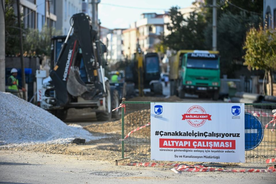 Barbaros Mahallesi Halil Aydemir Sokak’ta, Çanakkale Belediyesine bağlı ekipler tarafından 26 Kasım'da başlatılan altyapı yenileme çalışmaları sürüyor.