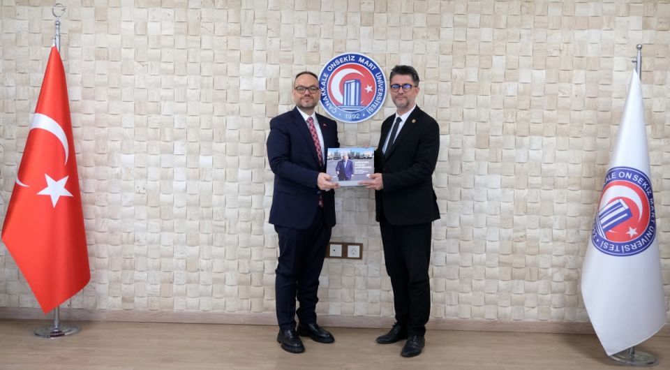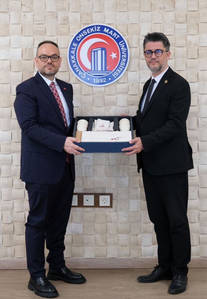 Cumhurbaşkanlığı İletişim Başkan Yardımcısı İlhami Giray Şahin, Çanakkale Onsekiz Mart Üniversitesi Rektörü R. Cüneyt Erenoğlu’nu makamında ziyaret etti.
