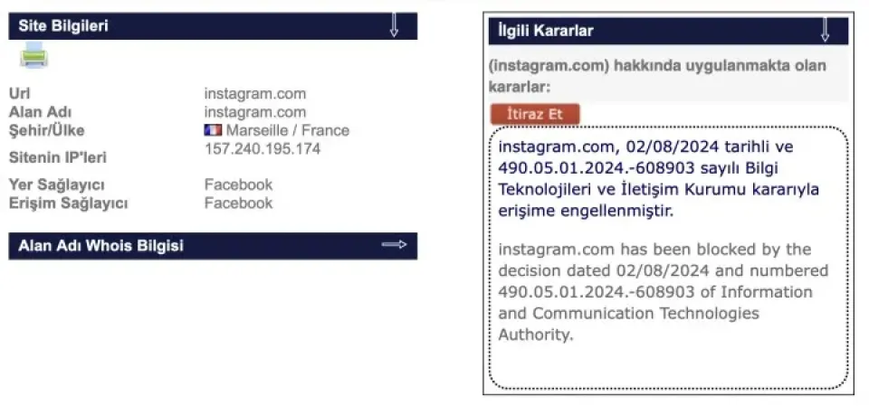 Bilgi Teknolojileri ve İletişim Kurumu kararıyla erişime