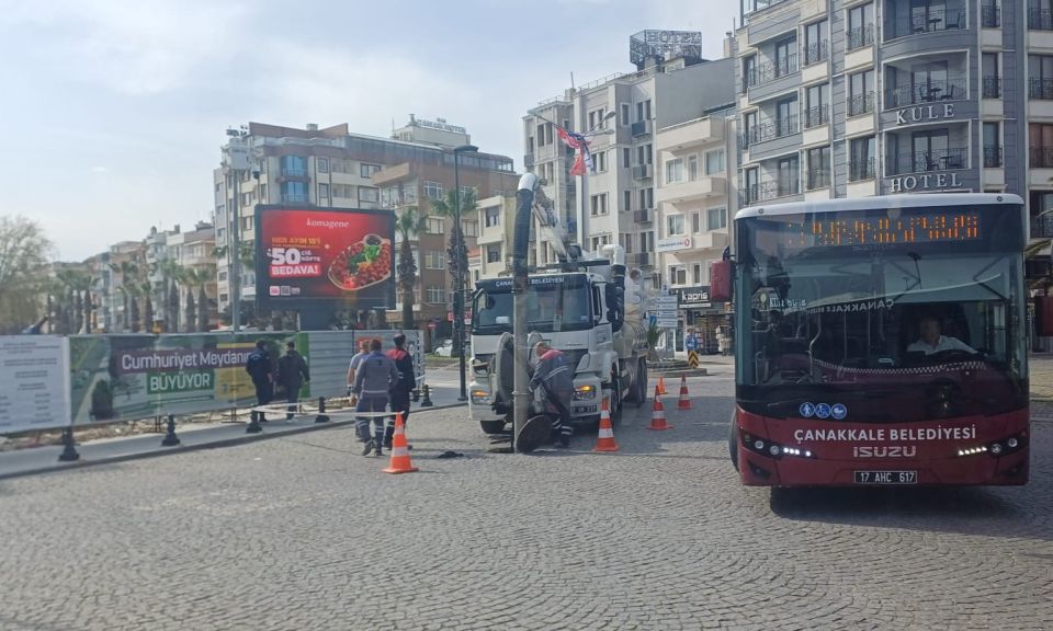 Dün benzer bir uygulama Saat Kulesi Meydanındaki rögarlarda yapılmış, ayrıca yine meydandaki ana kanalizasyon pompasında bakım ve onarım işleri gerçekleştirilmişti.