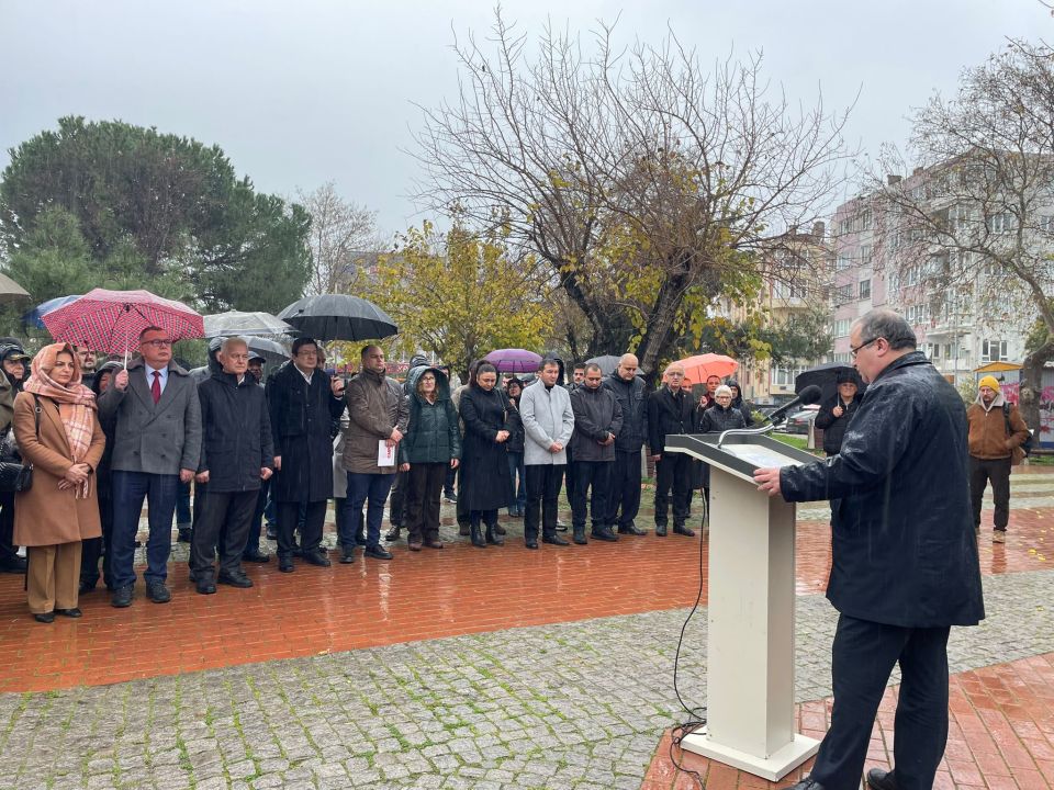 Anıta karanfillerin bırakılması, saygı duruşu ve İstiklal Marşının okunmasının ardından törende ilk konuşması CHP Merkez İlçe Başkanı İbrahim Can Ergun yaptı.