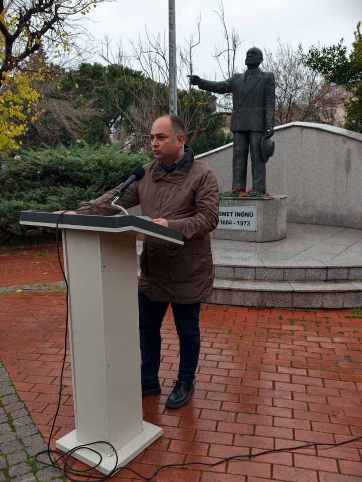 Tören CHP İl Başkanı Levent Gürbüz'ün günün anlam ve önemine binaen yaptığı konuşma ile son buldu. Gürbüz, İnönü’nün Türkiye Cumhuriyeti temellerinin atılmasında büyük rol sahibi olduğunu belirterek; konuşmasını İsmet İnönü’nün “Bu ülkede namuslular da en az namussuzlar kadar cesur olmadıkça kurtuluş yoktur.” sözüyle noktaladı.