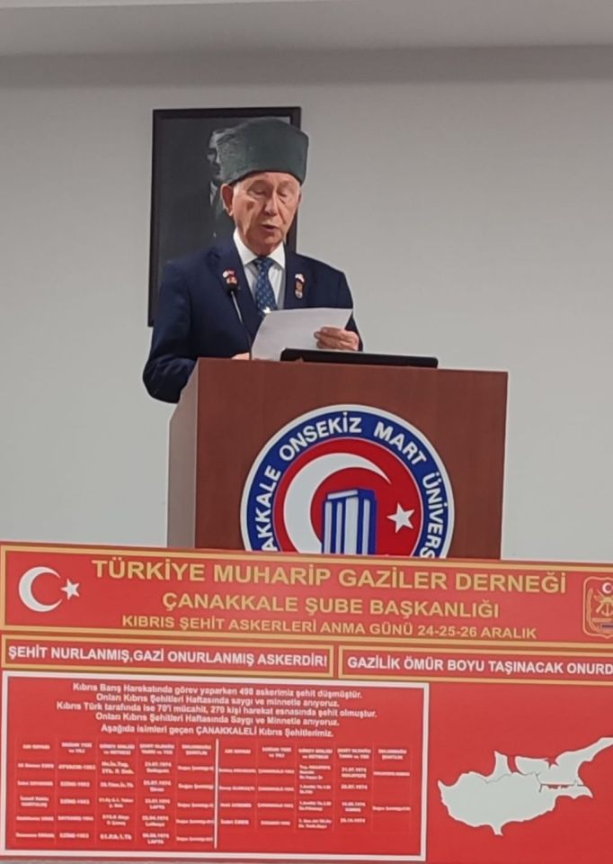 Kıbrıs Türk halkının verdiği milli mücadelenin tarihsel süreci, Çanakkale’de düzenlenen panelde tüm yönleriyle ele alındı. Türkiye Muharip Gaziler Derneği Çanakkale Şubesi tarafından organize edilen “Kıbrıs’ta Türk Milli Mücadelesi” konulu etkinlikte, Kıbrıs’ta yaşanan acılar, direniş süreci ve tarihsel gerçekler bir kez daha kamuoyunun gündemine taşındı.