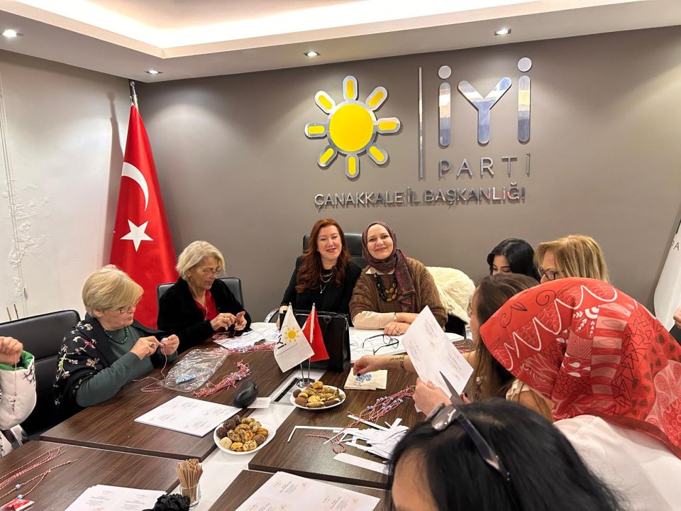 Toplantının ardından İYİ Partili kadınlar anlamlı bir etkinliğe imza attı. Kadın üyeler, 8 Mart Dünya Emekçi Kadınlar Günü kapsamında vatandaşlara dağıtılmak üzere bileklikler hazırladı.