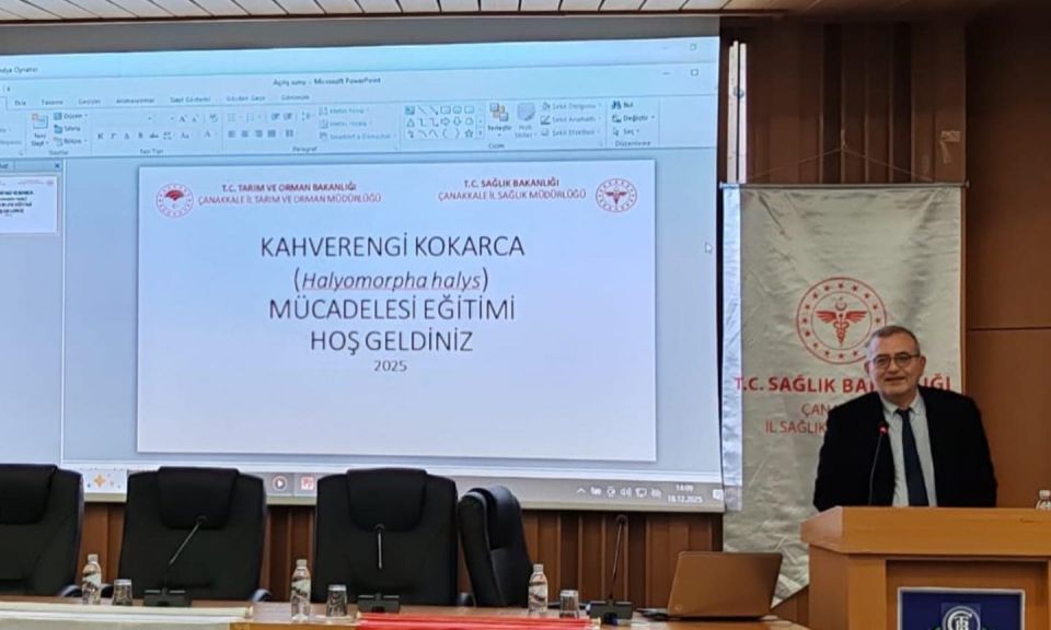 Tarımsal üretimde ciddi kayıplara yol açan kahverengi kokarca zararlısına karşı yürütülen mücadele kapsamında, Çanakkale İl Sağlık Müdürlüğü ile İl Tarım ve Orman Müdürlüğü tarafından ortak bir eğitim çalışması gerçekleştirildi. Eğitim programında, il genelinde biyosidal ürün uygulama izni ve yetkisine sahip firma çalışanları ile İlçe Sağlık Müdürlükleri ve Toplum Sağlığı Merkezlerinde görev yapan personeller bir araya geldi.