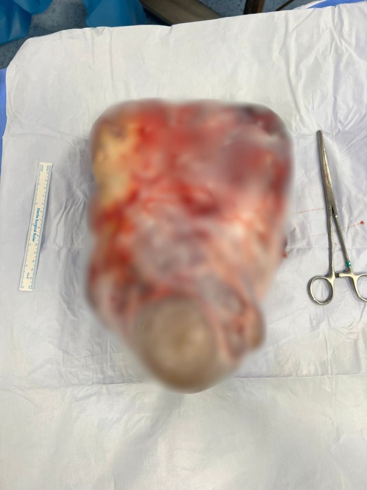 Hastanın ameliyat süreci hakkında bilgi veren Dr. Öğr. Üyesi Serhat Şen, "Kitle, bağırsakları sıkıştırdıkça kendine yer bulabiliyor. 40-45 santimetreye ulaşmasa da 10-15 santimetreye büyüdüğünde belirtiler ortaya çıkmaya başlıyor. Belirtilerin geç fark edilmesinin nedeni, hareketsiz yaşam tarzı ve düzenli kontrole gitmemesi. Çok hareketsiz kaldığımızda bedenimizdeki değişimleri anlamakta zorlanabiliyoruz. Yıllık kontroller, özellikle adetten sonra ultrasonla yapılmalı; bu çok önemli. Bu kadar geç fark edilmesi nadir bir durum ancak olabildiğini göstermesi açısından çarpıcı" dedi.