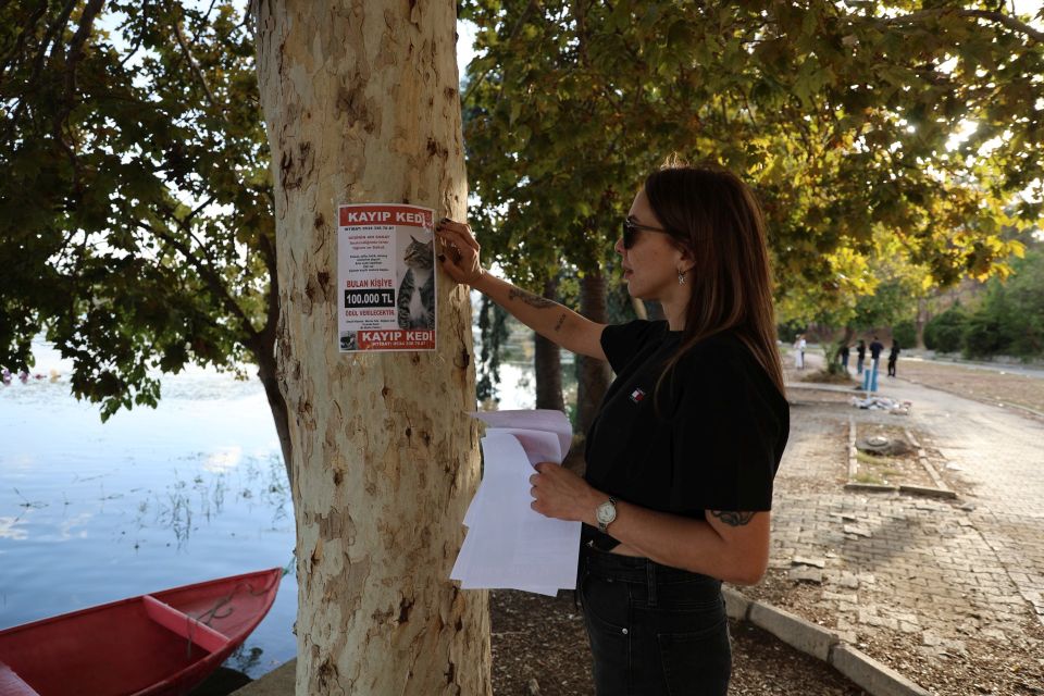 Pazartesi günü yeniden parka giden Düzgün, gördüğü herkese kedisini sordu ancak yine bir iz bulamadı ve üzerinde "Bulana 100 bin lira ödül var" yazılı el ilanı çıkarttı. Düzgün, ilanları ağaç ve konteynerlere yapıştırdı. Şimdi parkın çevresinde gezip kedisini arayan Düzgün, kedisini bulan kişiye 100 bin lira ödül verecek.