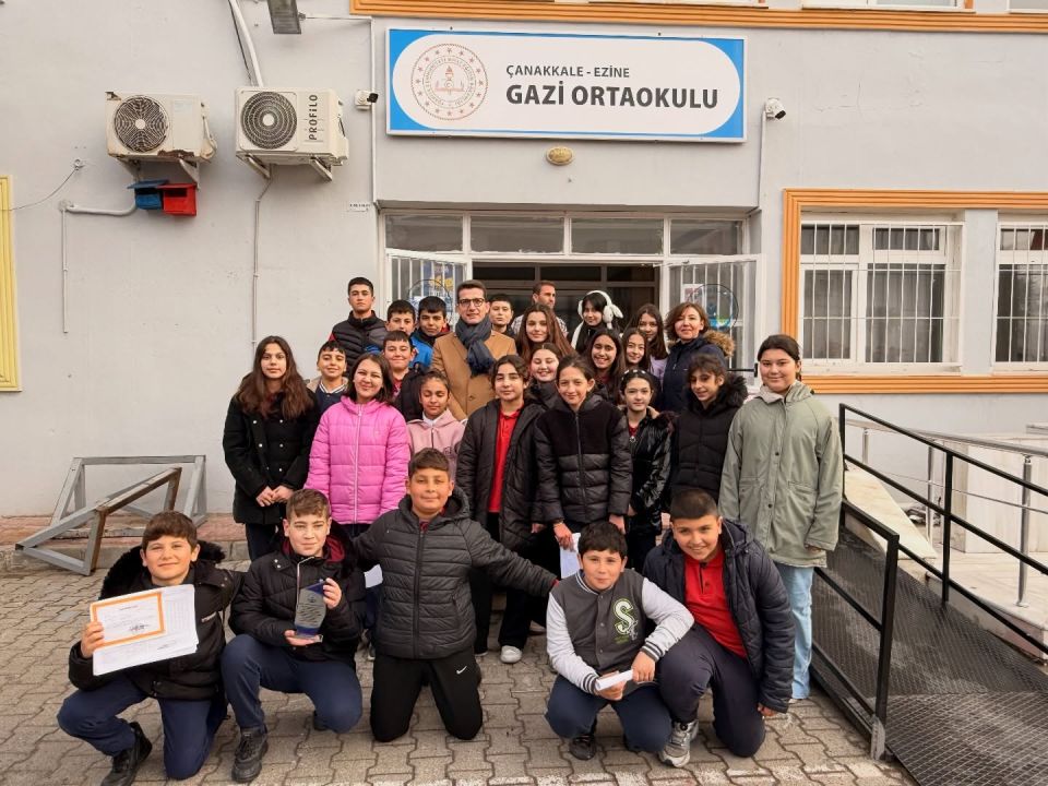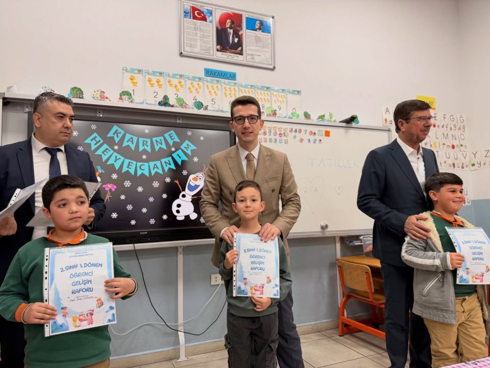 Ezine Kaymakamı Yusuf Kaptanoğlu, 2025-2026 eğitim öğretim yılının ilk yarısının sona ermesi dolayısıyla Gazi İlkokulu ve Gazi Ortaokulu’nda düzenlenen yarıyıl karne dağıtım törenine katıldı. Okul ziyaretinde sınıfları tek tek gezen Kaymakam Kaptanoğlu, öğrencilere karnelerini vererek sevinçlerine ortak oldu.