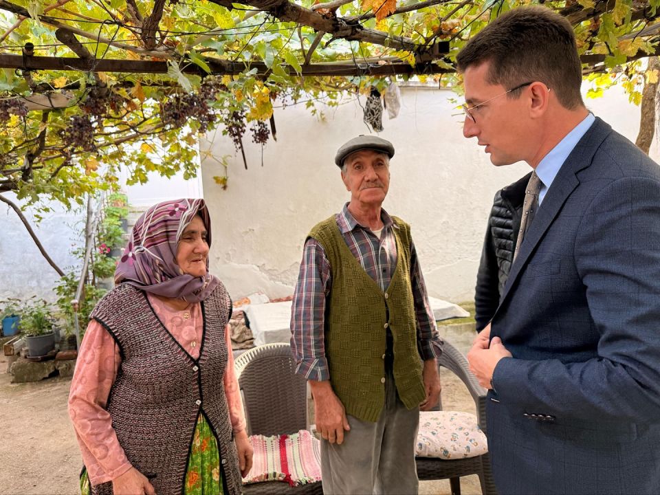 Hane ziyaretlerini sürdüren Ezine Kaymakamı Yusuf Kaptanoğlu, Kemallı Köyü’nde ikamet eden yaşlı, hasta vatandaşlar ile Kıbrıs Gazileri Celal Can ve Mehmet Gün’ü evlerinde ziyaret etti.