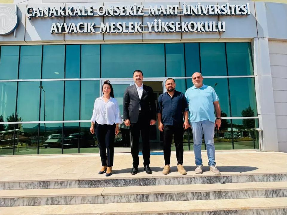 Ayvacık Meslek Yüksekokulunu ziyaret eden Kaymakam Mustafa Karali,, Meslek Yüksekokulu Müdürü Öğretim Görevlisi Burak Balık ile bir araya geldi.