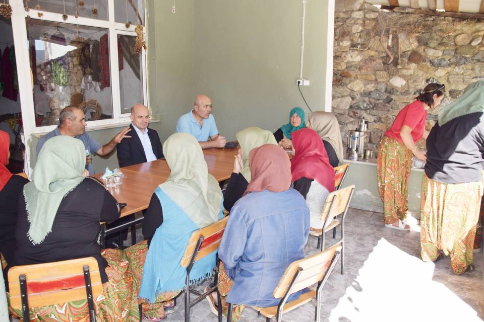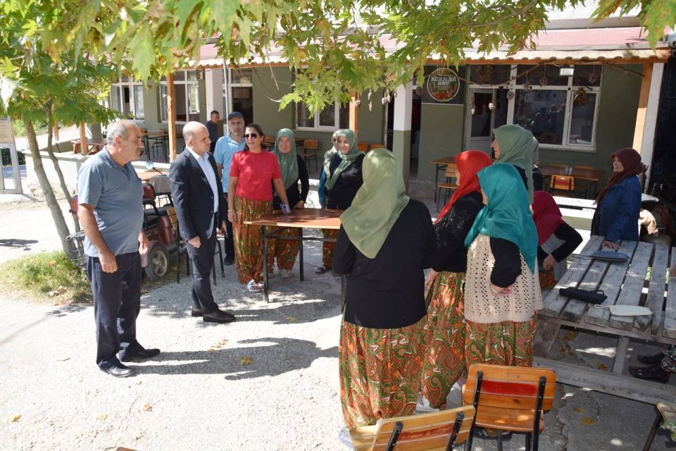 Ahlatlıburun Köyü’nde köy mezarlığının dış duvar ve çevre düzenlemesi yerinde incelendi. Kızılelma Köyü’nde ise S.S. Tarımsal Kalkınma Kooperatifinde görev yapan kadınlar ve Köy Muhtarı ile bir süre sohbet eden Kaymakam Nebioğlu, kadınların ürettiği ürünleri ve kooperatifte yapılan tadilatları yerinde gördü.
