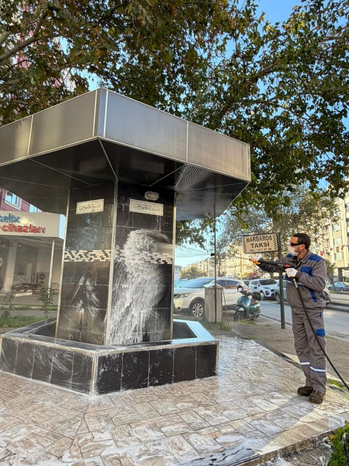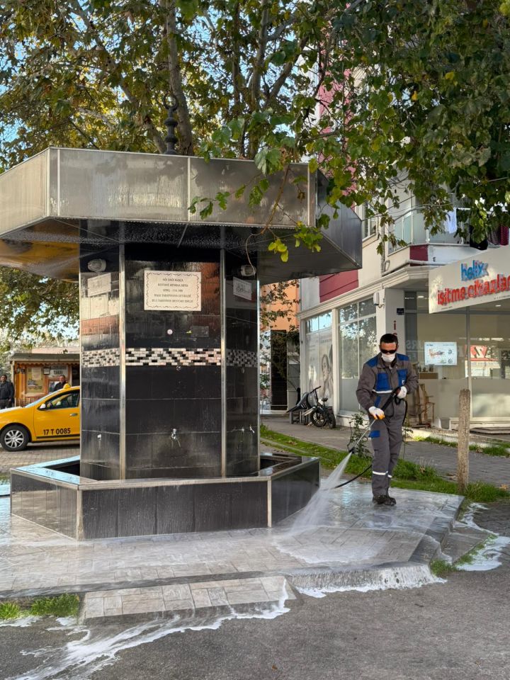 Rutin olarak düzenlenen çalışma kapsamında, çeşitli nedenler ile çeşmelerde oluşan yosunlar ve lekeler özel temizlik ekipmanları ile yıkanarak temizlendi.