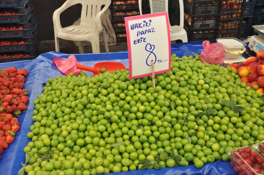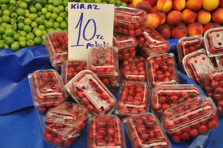 Baharın gelmesiyle pazardaki meyvelerde yer değiştirdi. Tezgahlar, yaz meyvelerine kapılarını açtı. Tezgahlarda yer alan çeşit çeşit meyveler, vatandaşların ilgi odağı oldu. En dikkat çeken meyve ise kiraz ve erik oldu. 300 gram kiraz, 15 lira ile tezgahlarda yer buldu. Vatandaşlar, kirazı kırmızı etle karşılaştırarak alışverişlerini tamamladılar. Kırmızı etin kilosu 75 lirayı bulurken kirazla arasındaki fiyat farkı 5 lira ile sınırlı kaldı. Kirazın daha olgunlaşmamasından dolayı fiyatının yüksek olduğunu söyleyen pazar esnafı, kiraz fiyatının yaklaşık 1 ay içinde düşeceğini söyledi. Erik ise 50-60 liradan 8 liraya kadar düşerek vatandaşların ilgisini çekti.