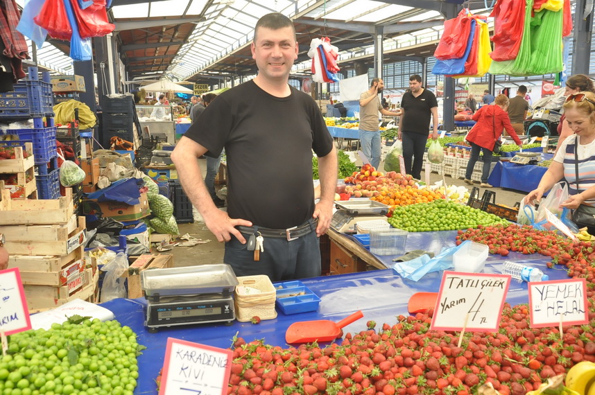 Kilosu 70 lirayı bulan kirazı genelde hamile kadınların tercih ettiğini söyleyen pazarcı Birkan Demirel; “Yaz yaklaşırken yaz meyvelerimiz de tezgahlarımıza gelmeye başladı. Yaz meyvelerinden şeftali, kayısı, karpuz, çilek, erik, kiraz var. Şuanda en pahalı meyvemiz kiraz. 300 gram kiraz 10 ile 15 lira arasında satılıyor, kirazın kilosu da ortalama 70 liraya geliyor. Kirazı da zaten genelde hamile kadınlar için tezgahlara koyuyoruz, bazen onlar sipariş veriyor bazen de kendileri gelip alıyor. Özellikle erik 50 liraya kadar satılmıştı ama şimdi 8 liraya kadar düştü. Ürün ne zaman bollaşırsa o zaman fiyatı düşer. Kiraz da yaklaşık 1 ay sonra vatandaşın alabileceği fiyatı bulur. Kiraz dışındaki diğer meyveler 1 hafta sonra 5 liraya kadar düşer, biz de vatandaşa uygun fiyattan ürün satarız. 2 hafta sonra mısırlarımız da tezgahlarda yerlerini alacaklar. Biz, mısırı kendimiz yetiştirip getiriyoruz” dedi.