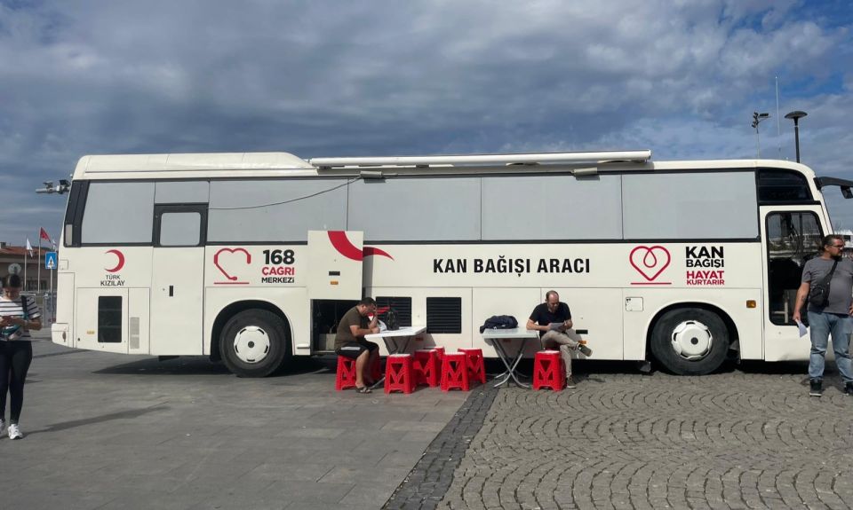 Kan Bağışı Aracı havanın da müsait olmasından yararlanılarak bugün de yine İskele Meydanı'ndaki yerinde hizmet verdi.
