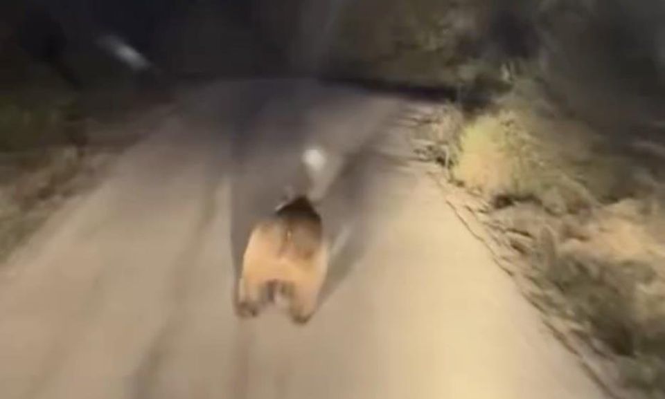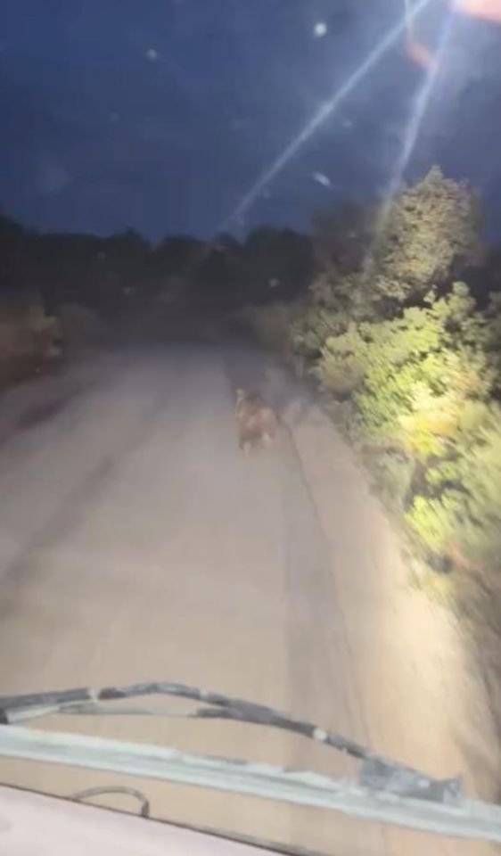 Biga ilçesi Elmalı köyü mevkiinde seyir halinde olan bir aracın önüne ayı çıktı. Araç içindekiler ise o anları cep telefonu kamerası ile yakaladı. Araç ile adeta yarışan ayı bir süre sonra ormana doğru ilerleyerek gözden kayboldu.