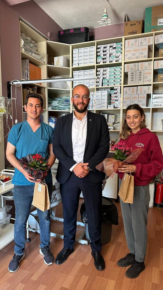 Küçükkuyu’da Dünya Veteriner Hekimler Günü’nde Küçükkuyu Belediye Başkan Vekili Av. Bahadır Emre Diken, Belediye Veterinerlik Hizmetleri Birimi ile beldede görev yapan veteriner hekimlere ziyarette bulundu.