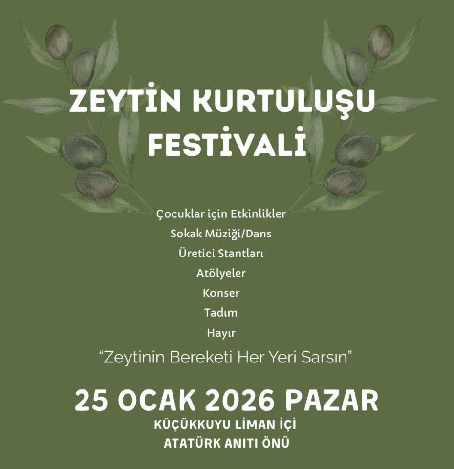 Bölgenin en önemli ekonomik ve kültürel değerlerinden biri olan zeytini yaşatmak ve bu zengin mirası gelecek nesillere aktarmak amacıyla düzenlenen festival, üretimi ve emeği tek bir çatıda buluşturacak. Etkinlik boyunca Küçükkuyu’nun yaşamına bereket katan zeytin ağacının hikayesi; kültürel etkinlikler, tadım seansları ve atölye çalışmalarıyla anlatılacak.