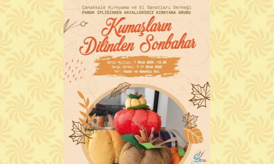 Çanakkale Belediyesi Ekim ayı kültür-sanat etkinlikleri kapsamında Çanakkale Kırkyama ve El Sanatları Derneği Pamuk İpliğinden Hayallerimiz Kırkyama Grubu’nun eserlerinden oluşan Kumaşların Dilinden Sonbahar sergisinin açılışı bugün gerçekleştirilecek.
