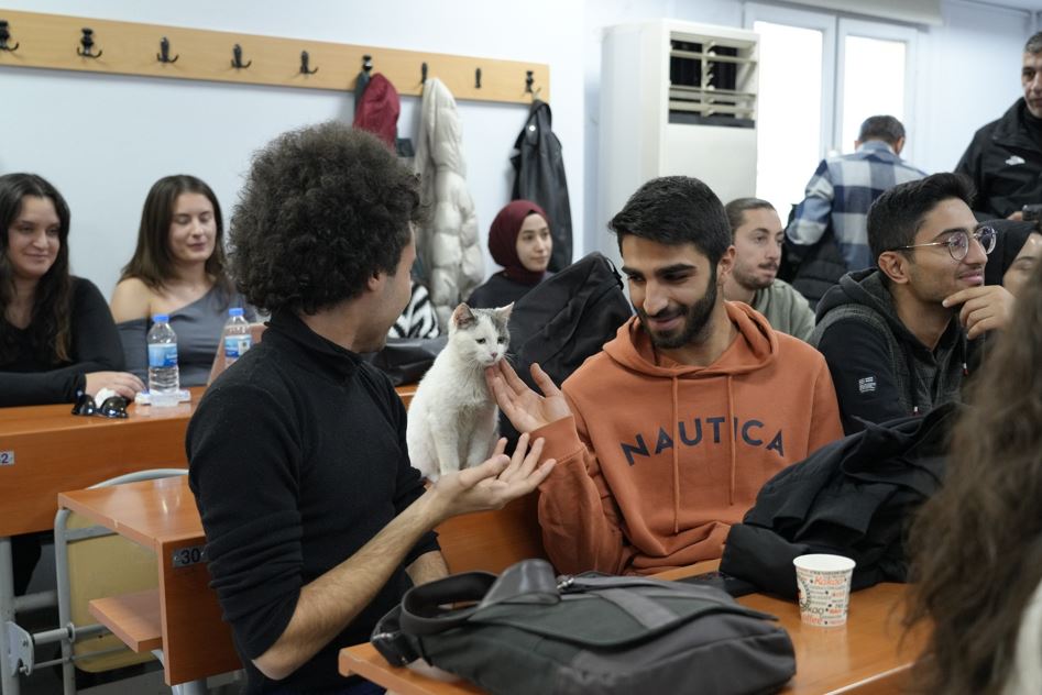 Öğrencilerden Derya Güney, “Kendisi okulun kedisi oldu. Zaten sürekli fakültenin içinde geziyor, yani herkes çok seviyor” şeklinde konuştu.