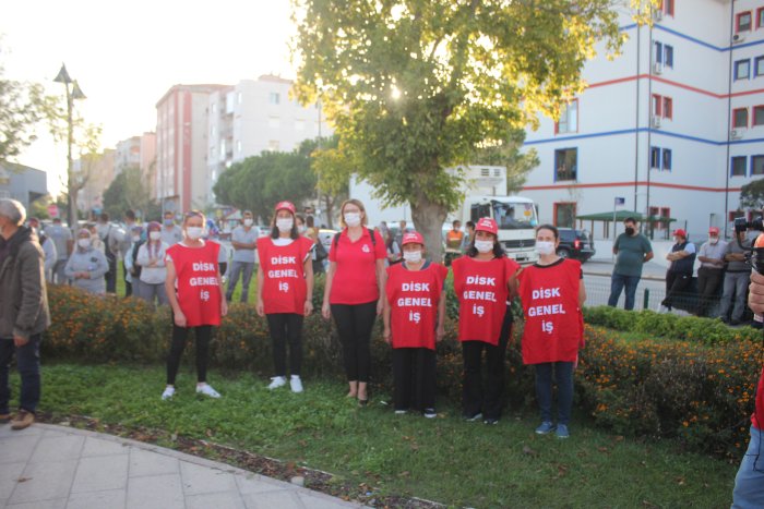 Çanakkale Belediyesi işçileri, Çanakkale Belediyesi kentsel hizmetler şirketi ve Genel İş arasında devam den toplu sözleşme görüşmeleri ile ilgili Adalet Parkı`nda bir araya geldiler. DİSK/Genel-İş Şube Başkanı Metin Ceylan tarafından Yönetim Kurulu adına yapılan açıklamada, Çanakkale Belediye` sine bağlı Kentsel Hizmetler Müh. Müt. Tic. Ve San. A.Ş. şirketinde çalışan 712 emekçiyi yakından ilgilendiren ve kendileri adına ilk kez yapılacak olan `Özgür Toplu İş Sözleşmesi` görüşmelerinin tıkanma noktasına geldiği belirtildi. Toplu Sözleşme görüşme tutanaklarının yok sayılmaya çalışılarak, sözleşmenin yürürlük süresi ve kapsamı ile ilgili kafa karışıklığı yaratıldığını belirten Ceylan, Gecesini gündüzüne katarak salgına rağmen Çanakkale halkına en iyi hizmeti verebilmek için çalışan emekçiler olarak talebimiz geçinebileceğimiz, insanca yaşayabileceğimiz ücretlerdir. Bizler lütuf değil hakkımız olanı istiyoruz" dedi.