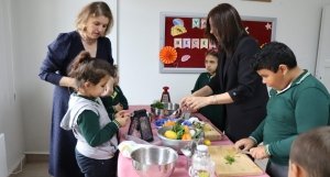 Kayadere İlkokulunda öğrencilerin üretimden tüketime uzanan süreci deneyimlediği salata yapım etkinliği renkli görüntülere sahne oldu. Etkinlik kapsamında öğrenciler, Yaşam Becerileri Atölyesinde kendi yetiştirdikleri ürünleri kullanarak hazırlık sürecinde aktif görev aldı.