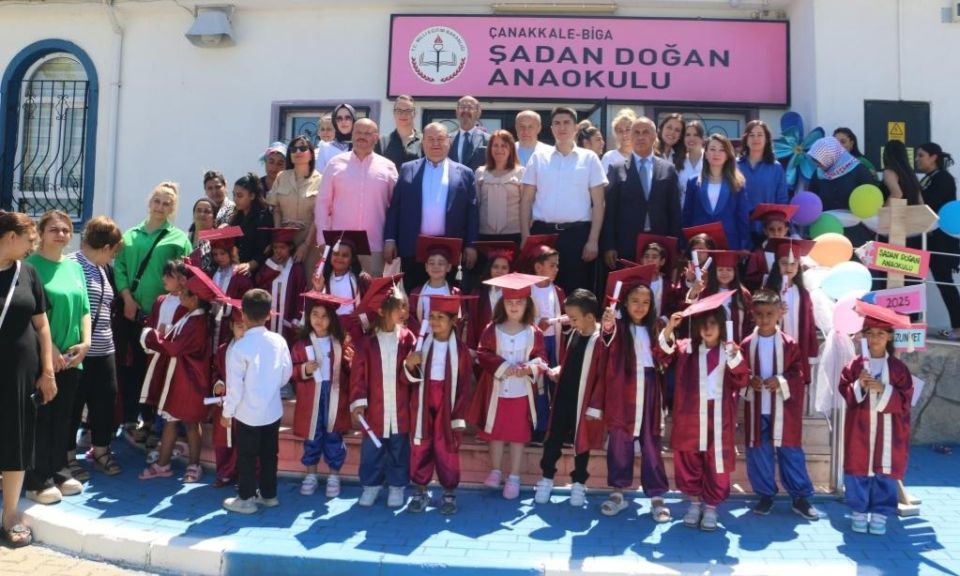 Biga Şadan Doğan Anaokulu’nda mezuniyet töreni renkli görüntülere sahne oldu. Törene Cumhuriyet Başsavcısı Hüseyin Demir, Biga Belediye Başkan Yardımcısı Ergün Tulnay, İlçe Millî Eğitim Müdürü Erkan Bilen, Biga Ticaret ve Sanayi Odası Başkanı Şadan Doğan’ın yanı sıra siyasi parti ve sivil toplum kuruluşu temsilcileri, okul müdürleri, öğretmenler, öğrenciler ve veliler katıldı.