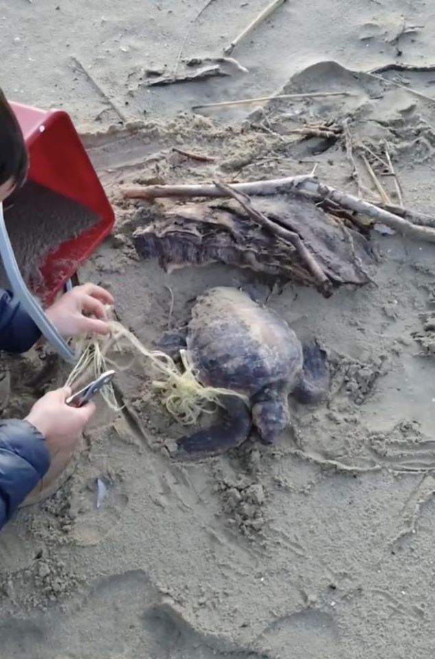 Gökçeada ilçesinde sahilde gezen Tolga Kılıç ve arkadaşlarının karşısına yerde hareketsiz halde yatan bir caretta caretta çıktı. Kılıç ve arkadaşları caretta carettanın yanına yaklaştıklarında denize atılan misina ve iplere dolandığını fark ettiler. Duyarlı vatandaşlar hayvanı misina ve ipten kurtararak, doğal ortamına geri bıraktı. O anlar ise cep telefonu kamerasına yansıdı.