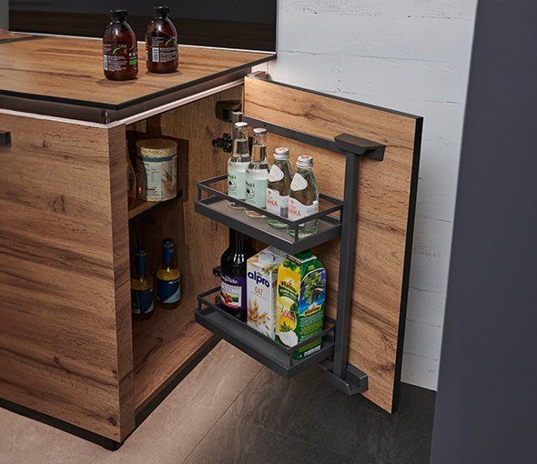 Kiler derinliği de düzenlemenin kalitesini doğrudan etkiler. Derin kilerlerde arka sıraların gözden kaybolmaması için döner sepetler, teleskopik çekim rayları ve bölmeli organizatörler devreye girer. Häfele Concept'in mutfak kiler sistemleri, bu ihtiyaca yönelik farklı derinlik ve yüksekliklere uygun modüler çözümler sunarak kilerin her santimetresinin işlevsel biçimde kullanılmasını mümkün kılmaktadır.