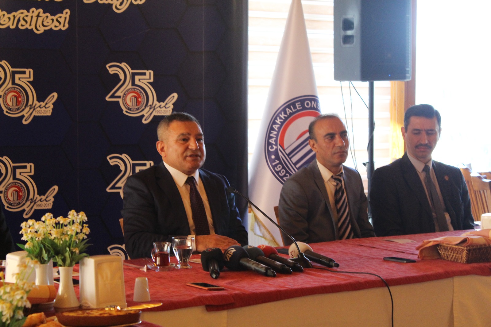 ÇOMÜ Rektörü Prof. Dr. Yücel Acer ÇOMÜ basın mensupları ile bir araya geldi. ÇOMÜ 2017 değerlendirmesinde bulunan Acer, geride kalan 2017 yılı içerisinde, ÇOMÜ olarak birçok açıdan niteliklerini daha da güçlendirmiş olmanın mutluluğunu ve haklı gururunu yaşadıklarını belirterek; “50 bin 430’e ulaşan öğrenci sayısı, 102 bin mezunu, 15 bin 89’a yükselmiş akademik personel sayısı ile Üniversitemiz, TÜBİTAK’tan en çok destek alan 24’üncü üniversite olurken, öğrencilerin en çok memnun olduğu üniversiteler sıralamasında 18’inci sıraya yükseldi. Aralık 2017’de, Biga Uygulamalı Bilimler Yüksekokulu’nun, Biga Uygulamalı Bilimler Fakültesi’ne dönüşmesi ile birlikte fakülte sayımız 15’e yükseldi. Diş Hekimliği Fakültesi’ne öğrenci alımını gerçekleştirmek maksadı ile bu fakültemize öğretim üyeleri kazandırmaya başladık” dedi.