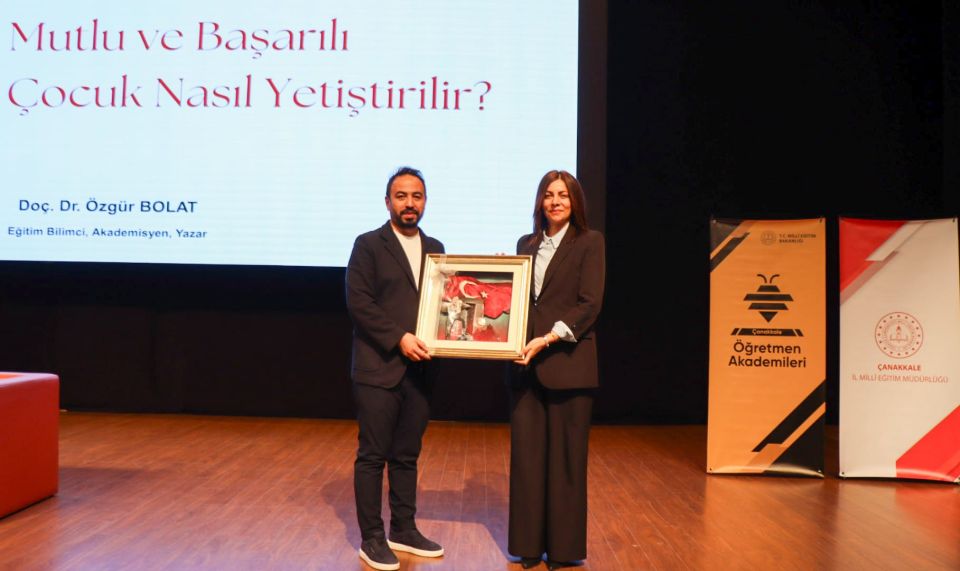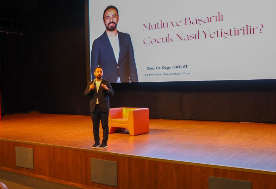 Kapanış programının konuğu olan akademisyen ve yazar Doç. Dr. Özgür Bolat, “Mutlu ve Başarılı Çocuk Nasıl Yetiştirilir?” başlıklı semineriyle öğretmenler ve velilerle bir araya geldi. Seminerde çocukların akademik başarısı kadar psikolojik iyi oluşlarının da önemine dikkat çekildi.