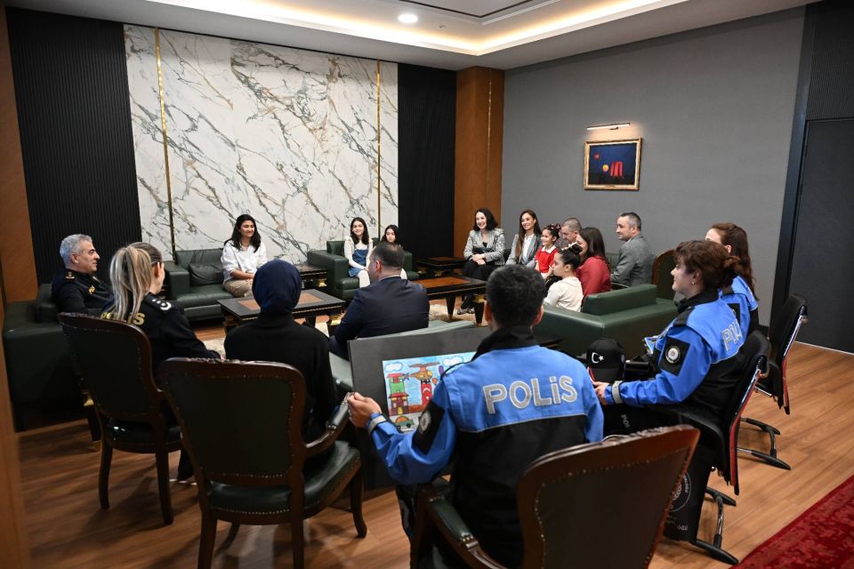 Türk Polis Teşkilatı’nın 181. kuruluş yıl dönümü ve 10 Nisan Polis Haftası, Çanakkale’de düzenlenen çeşitli etkinliklerle kutlanmaya devam ediyor. Bu kapsamda düzenlenen “Resim Yarışması”nda dereceye giren öğrenciler, ödüllerini almak üzere Çanakkale İl Emniyet Müdürü Ergün Dağıstanlı’yı makamında ziyaret etti.