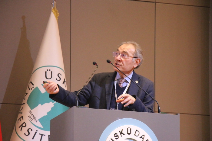 Üsküdar Üniversitesi Rektör Danışmanı-Dahili Tıp Bilimleri Bölüm Başkanı Prof. Dr. Tayfun Uzbay tarafından "Propofol ve Deksmedetomidinin Bağımlılık Potansiyeli: Bazı Deneysel Çalışmaların Sonuçları" başlıklı bir sunum düzenlendi. Konuşmasında nörobilim alanında çözüm bekleyen sonuçlar için bir arayış olduğunun üzerinde duran Prof. Dr. Tayfun Uzbay, "Önce multidisipliner dedik sosyal bilimlerle fen bilimlerini sağlık bilimlerini aynı yerde multidisipliner çalıştırmaya gayret ettik. O da yetmedi matematik ve kuantum işin içine girdi. Nöronu gösteriyoruz, ama beyindeki bağlantısallık ağlarını hastalıklara özgün hale getiremiyoruz. İşte bu noktada tanı anlamında gidilecek yollar var. Tam tanıyı koyduğumuzda, bu yapıyı eski haline nasıl çevireceğimize odaklanacağız. Bu yapıyı eski haline çevirdiğiniz zaman kati iyileşme, radikal çözüme ulaşacağız. Buradan yola çıkarak psikopatları ve sosyopatları tedavi edip topluma da kazandırıp toplumdaki suç oranı düşmesini sağlayacağız. Bundan 200-300 yıl sonra insanlar diyecekler ki muhtemelen, "şizofreni hastalarına bunu veriyorlarmış, alzheimerda hiçbir şey yapamıyorlarmış... Şu an yaptığımız, şizofreni hastasının belirtilerini baskılıyoruz ilaç vererek hastalığı geçirmiyoruz. Çünkü sebeple değil görebildiğimiz sonuçla uğraşıyoruz. Sebebi göremiyoruz. Sorun bu. Hesaplamalı nörobilim bize hastalıkların sebeplerini göstermesi ve sonuca ulaşmamız açısından önemli bir alan." diye söyledi.