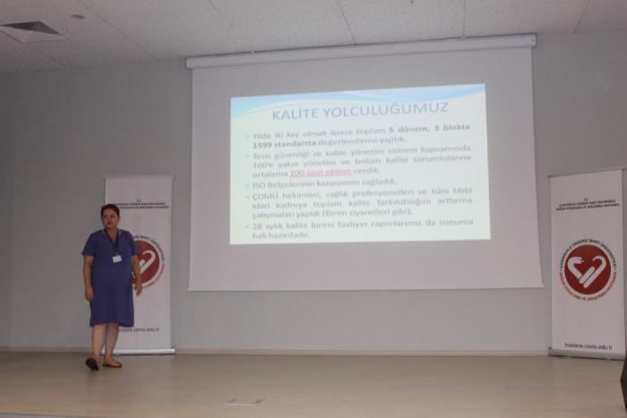 Çanakkale Onsekiz Mart Üniversitesi Hastanesi'nde, Sağlıkta Kalite ve Akreditasyon Standartları Işığında kurumun gelişme ve ihtiyaçlarını desteklemek, misyon ve hedeflerine yönelik ilerlemeyi ölçmek, kaliteyi iyileştirmek, hizmet kalitemizi yükseltmek ve belgelemek amacıyla "Sağlıkta Kalite ve Akreditasyon ve Öz Değerlendirme Süreci ", "Bina Turu Kontrol ve İyileştirme Faaliyeti Eylemleri" konulu toplantı yapıldı. Toplantıya Çanakkale Onsekiz Mart Üniversitesi Rektörü Prof. Dr. R. Cüneyt Erenoğlu, Rektör Yardımcıları Prof. Dr. Hüseyin Erkul, Prof. Dr. Dinçay Köksal ve Prof. Dr. Evren Karayel Gökkaya, Genel Sekreter Oğuz Ünal, Tıp Fakültesi Dekanı Prof. Dr. Muammer Karaayvaz, Hastane Başhekimi Doç. Dr. Hasan Ali Kiraz, Başhekim Yardımcıları Doç. Dr. Canan Akman, Dr. Öğr. Üyesi Semih Petekkaya, Dr. Öğr. Üyesi İsmail Ertuğrul Gedik ve Hastane Yönetimi katıldı. Kalite Direktörü Prof. Dr. Özlem YAYINTAŞ Sağlıkta Kalite ve Akreditasyon Standartları Işığında Öz Değerlendirme Sürecini ve Tesis Güvenliği Komitesi kapsamlarında yapılan Bina Turu kontrolünde karşılaşılan sorunları, düzenleyici ve önleyici iyileştirme faaliyetlerini değerlendirdi.Toplantı sonrası Kalite Direktörü Prof. Dr. Özlem YAYINTAŞ, soru ve önerileri alarak toplantı sona erdi.