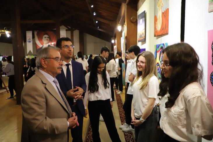 Gelibolu Belediye Başkanı M. Mustafa Özacar, Gelibolu'da bulunan resim sergisini ziyaret ederek öğrencilerle bir araya geldi.
