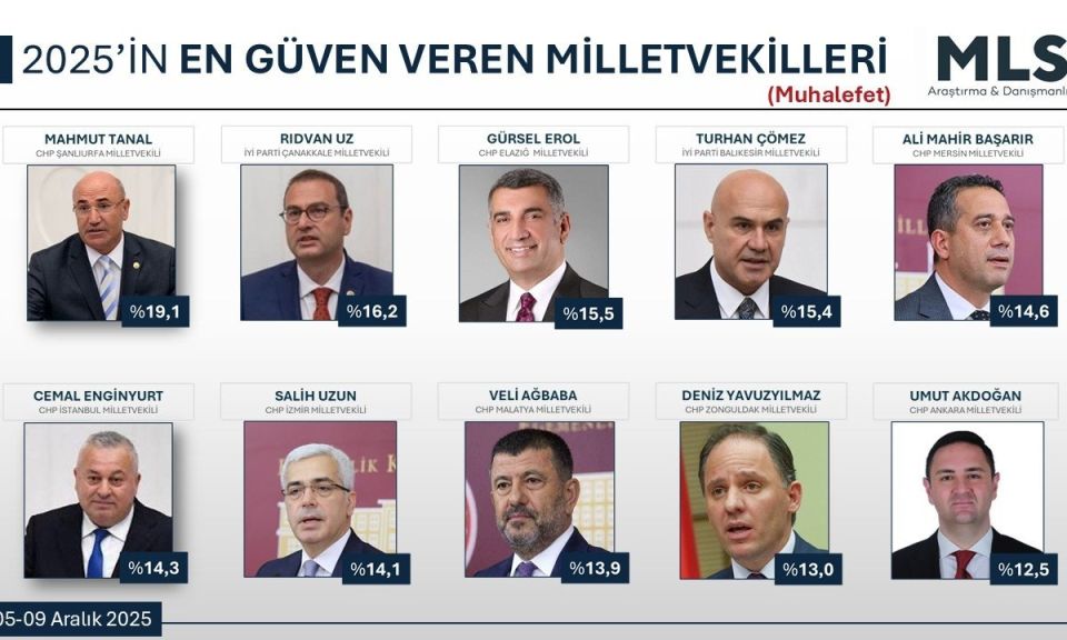 MLS Araştırma’nın 05-09 Aralık 2025 tarihlerinde gerçekleştirdiği son kamuoyu yoklamasında, Çanakkale’nin Ankara’daki sesi olan İYİ Parti Milletvekili Rıdvan Uz büyük bir başarıya imza attı. Araştırmada “2025’in en güven veren muhalif milletvekilleri” sıralamasında %16,2’lik oranla ikinci sıraya yerleşen Uz, Çanakkalelilerden ve seçmenlerden aldığı güçlü destekle dikkatleri üzerine çekti.