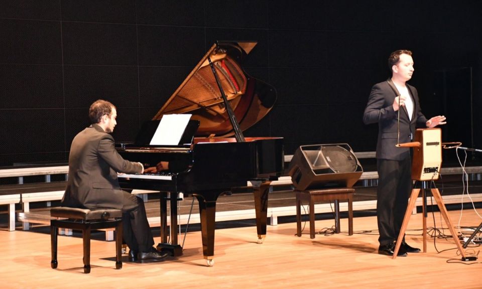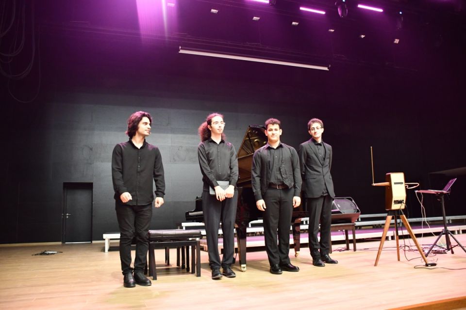 Program, fakülte öğrencilerinin sekiz el piyano için yazılmış özel bir eseri seslendirmesiyle başladı. Ardından sahneye, theremin enstrümanının mucidi Léon Theremin’in torunu Peter Theremin ve Mehmet Fatih Turan (piyano) çıktı.