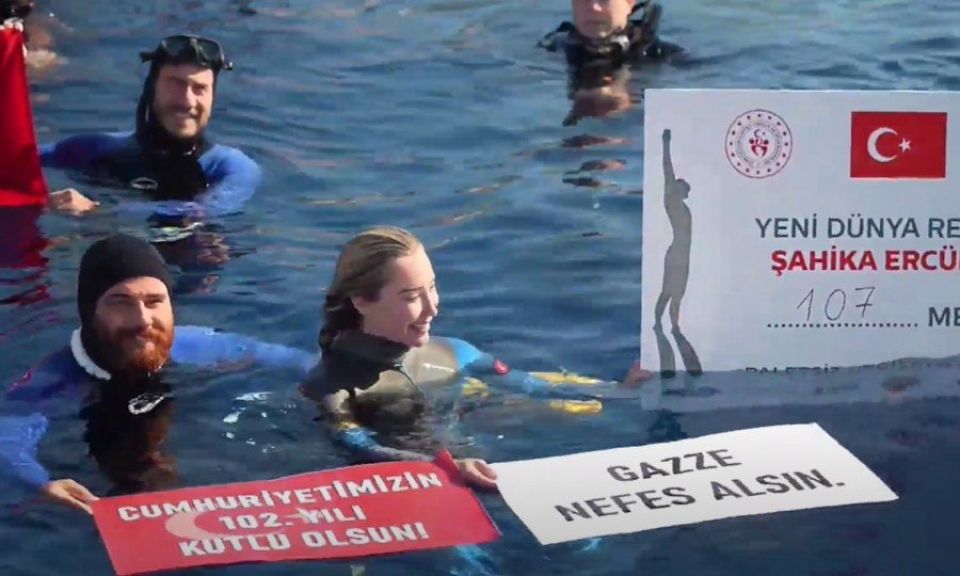 Şahika, rekor sonrası 'Gazze nefes alsın' yazılı dövizle birlikte mutluluğunu paylaşarak, "10 sene önce yaptığımız dalışla da bu tepkimi dile getirmiştim. Gazze’deki sürecin takipçisiyim. Bugün çok şükür bir barış sürecine girildiğini görüyoruz. Bu süreç kalıcı bir barış getirene kadar dalışlarımla Gazze’ye nefes olmaya devam edeceğim. Dilerim ki Gazze nefes alsın, karanlıklar aydınlığa çıksın. Biz sporla, doğayla ve umutla yaşatmaya devam edeceğiz" ifadelerini kullandı.