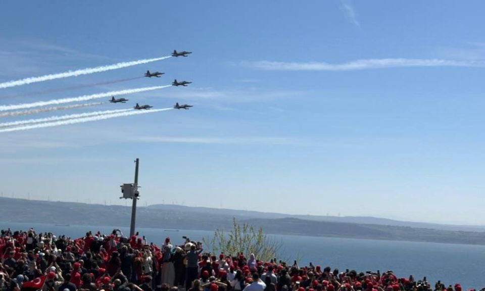 Çanakkale Kara Savaşları'nın 111'inci yıl dönümünde Şehitler Abidesi'nde 57. Alay Vefa Yürüyüşü'nün kapanış programı gerçekleştirildi. Törene Gençlik ve Spor Bakan Yardımcısı Safa Koçoğlu ve binlerce öğrenci katıldı. Tören ardından öğrencilere ve Şehitler Abidesi ziyaretçilerine Türk Yıldızları gösteri uçuşu gerçekleştirdi. Vatandaşlar gösteriyi ilgi ve heyecanla izledi.
