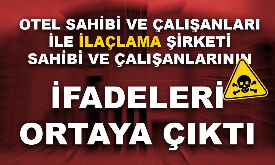 Şüpheli Hakan O. ise, "Harbour Suits isimli iş yerini yaklaşık 5-6 ay önce devraldım. Ben şeker hastası olduğum için bacağımdan rahatsızlandım bu nedenle yaklaşık 3 aydır otele gidemiyorum. Bu süreçte otelle ilgili tüm işleri Halil D. yapar. Halil D. 10 Kasım günü beni arayarak otelin bir odasından böcek şikayeti geldiğini söyledi. Ben de kendisine ilaçlama firmasını çağırmasını söyledim. Halil D. benden aldığı talimat ile daha önceden ilaçlama işlemi yaptırdığımız DSS firması ile iletişime geçmiş. Bunun sonucunda 11 Kasım günü ilaçlama yapılmış. İlaçlama işlemi bittikten sonra oda yaklaşık 2-3 gün boyunca kapalı kalır. Sonrasında temizleme işlemi yapılarak kullanıma açılır. Benim ve çalışanlarımın ilaçlama işlemi ile ilgili herhangi bir sorumluluğu bulunmamaktadır. Aynı şirkete ağustos ayında da ilaçlama yaptırmıştık. Herhangi bir sıkıntı yaşamamıştık. Ben bu şirkete sertifikaları olup olmadığını sormadım" ifadelerini kullandı.