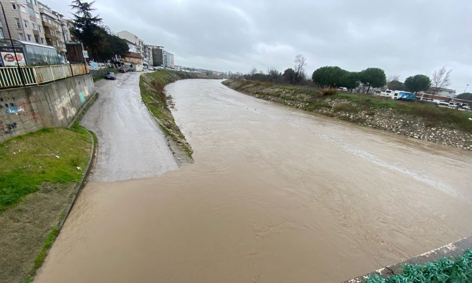 Biga'da 2 gündür etkili olan yağmur nedeniyle ilçe merkezinden