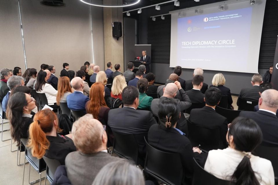 Dışişleri Bakanlığı Bilim ve Teknoloji Politikaları Genel Müdürü Büyükelçi Hami Aksoy, etkinlikte yaptığı konuşmada özellikle son 20 yılda teknoloji konusunda büyük bir atılım gerçekleştirdiklerini vurgulayarak, "Türkiye'deki teknoloji ekosistemi, bilim, inovasyon ve bu alanlara yatırım konusunda Büyükelçiliklerin farkındalıklarını arttırmak, diplomatları Teknopark'lara getirmek ve onlara Türk teknoloji ekosistemi hakkında bilgi vermek amacıyla ‘Tech Diplomacy Circle' girişimini başlattık. Özellikle son 20 yılda teknoloji konusunda büyük bir atılım gerçekleştirdik. Geçen sene araştırma geliştirme harcamalarında 20 milyar dolar seviyesine geldik. Biz de Bilim ve Teknoloji Politikaları Genel Müdürlüğü olarak, Ankara'da bulunan Büyükelçiliklerle işbirliğimizi arttırmayı hedefliyoruz" diye konuştu.