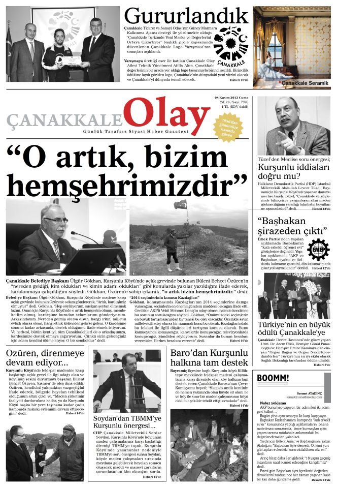 Tarihte Bugün 8 Kasım 2013: Tasarımda, sağlıkta ve toplumsal mücadelede Çanakkale’nin ön plana çıktığı bir gün olarak kayıtlara geçti.