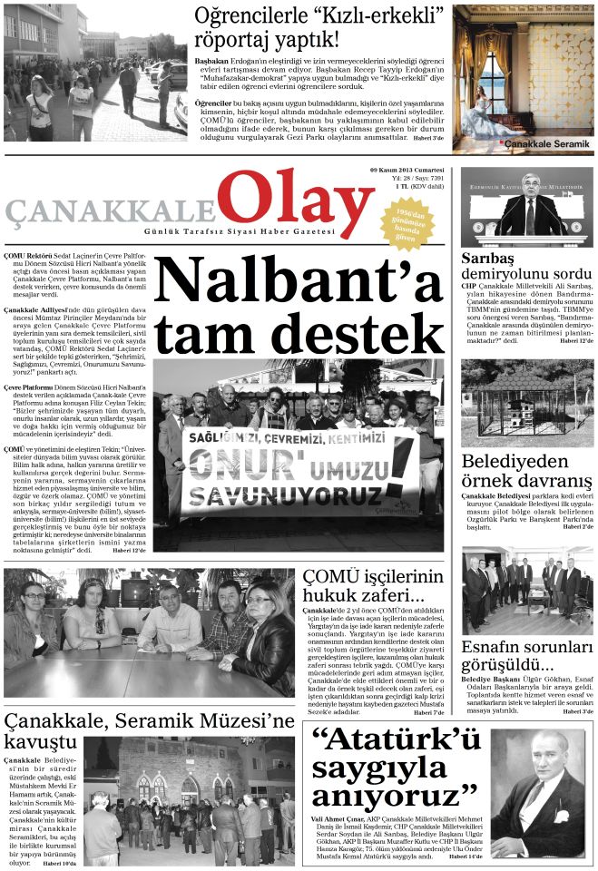 Tarihte bugün 9 Kasım 2013’te Çanakkale, eğitimden kültüre, hukuk ve toplumsal yaşamdan demiryolu yatırımlarına kadar birçok alanda gündemdeydi. ÇOMÜ öğrencileri “kızlı-erkekli” öğrenci evleri uygulamasına tepki gösterirken, Prof. Dr. Ahmet Nalbant’a siyasi soruşturma karşısında akademik ve çevreci kesimlerden tam destek geldi. CHP Milletvekili Serdar Sarıbaş, Bandırma-Çanakkale-İzmir demiryolu projesinin akıbetini Meclis gündemine taşıdı. Çanakkale Belediyesi sokak hayvanlarına yönelik örnek bir uygulama başlatırken, 38 ÇOMÜ işçisi hukuk mücadelesini kazanarak işlerine iade edildi. Ayrıca Mustafa Kemal Ergenekon Konağı, Çanakkale Seramik Müzesi olarak açıldı. Çanakkale’de tarihte bugün yaşanan gelişmeler hem özgürlük hem kültür hem de toplumsal dayanışma açısından önemliydi.
