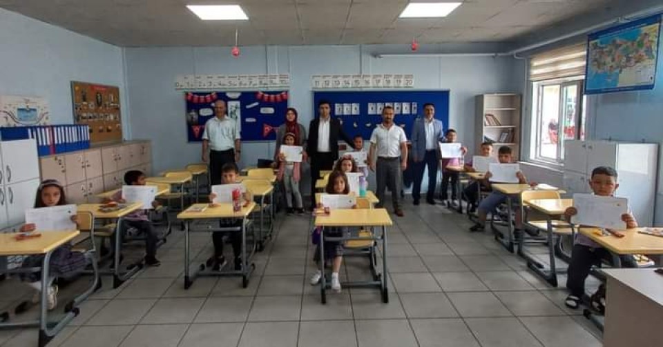 Düzenlenen töreninde Kaymakam Alper Taş ve eşi Gülnaz Taş, İlçe Milli Eğitim Müdürü Mehmet Etik ile birlikte öğrencilerin karnelerini takdim ederek öğrencilerin heyecanlarına ortak oldular.